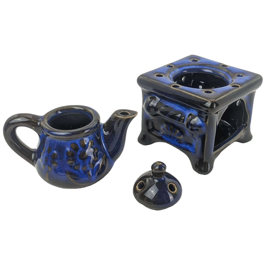 Blue Teapot 3-Piece Porcelain Oil Warmer