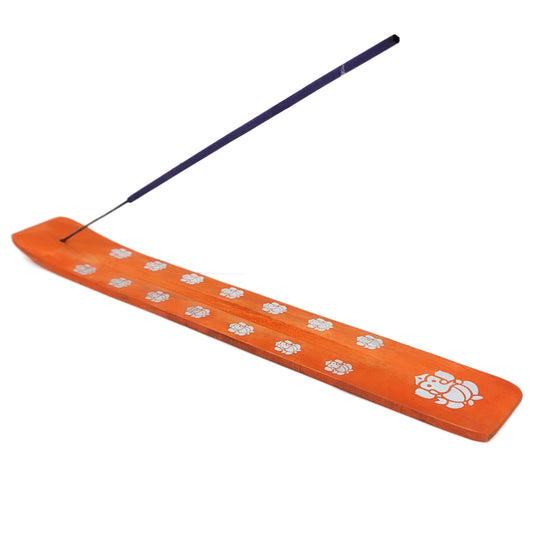 10" Wood Incense Burner & Ash Catcher, Ganesha (Orange) Design