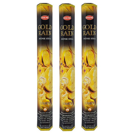 HEM Incense Sticks 20-Stick Hex Packs, Gold Rain