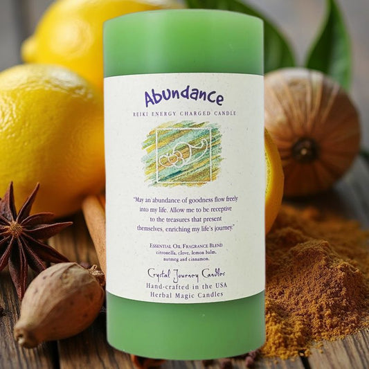 6" Reiki Charged Herbal Pillar Candle, Abundance Scent