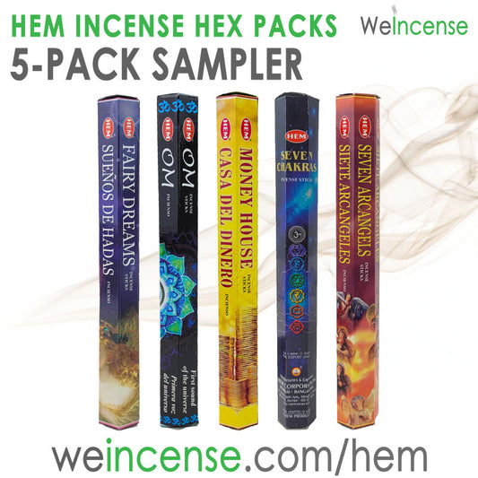 5-PACK SAMPLER 1, HEM Incense Sticks 20-Stick Hex Packs