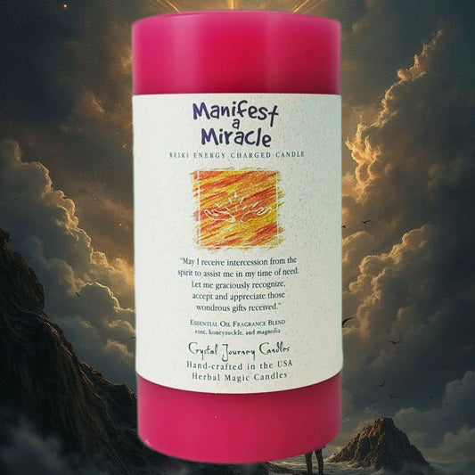 6" Reiki Charged Herbal Pillar Candle, Manifest A Miracle Scent