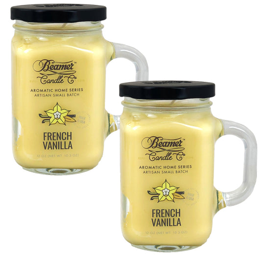 French Vanilla 5" Glass Jar Candle, 12oz Aromatic Home Series, by Beamer Candle Co