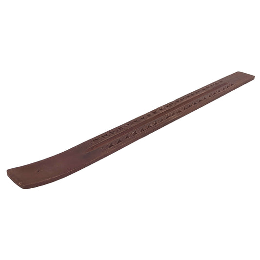 Jumbo Wood Incense Burner & Ash Catcher, Carved Design, 18"