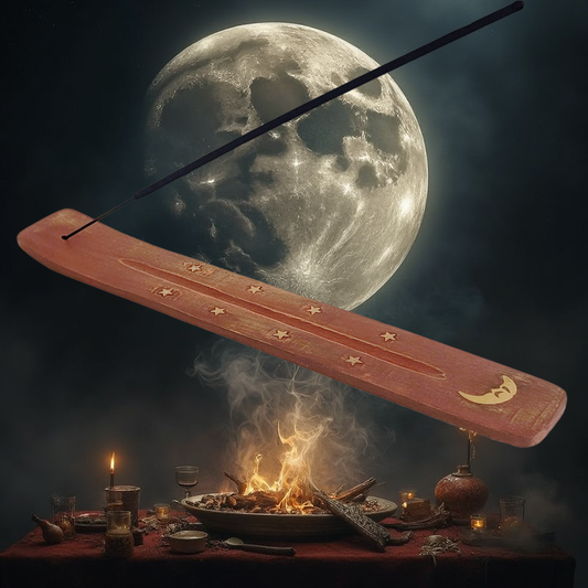 10" Wood Incense Burner & Ash Catcher, Moon Design