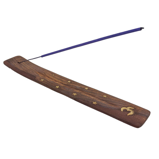 10" Wood Incense Burner & Ash Catcher, OM Symbol Design (Style B)