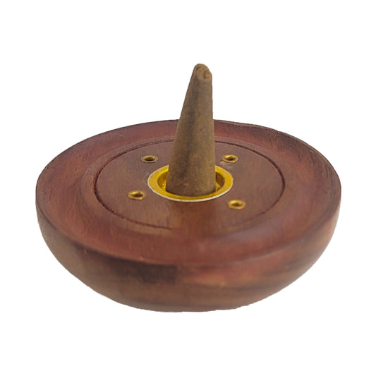 3" Round Wood Cone Incense Burner & Ash Catcher