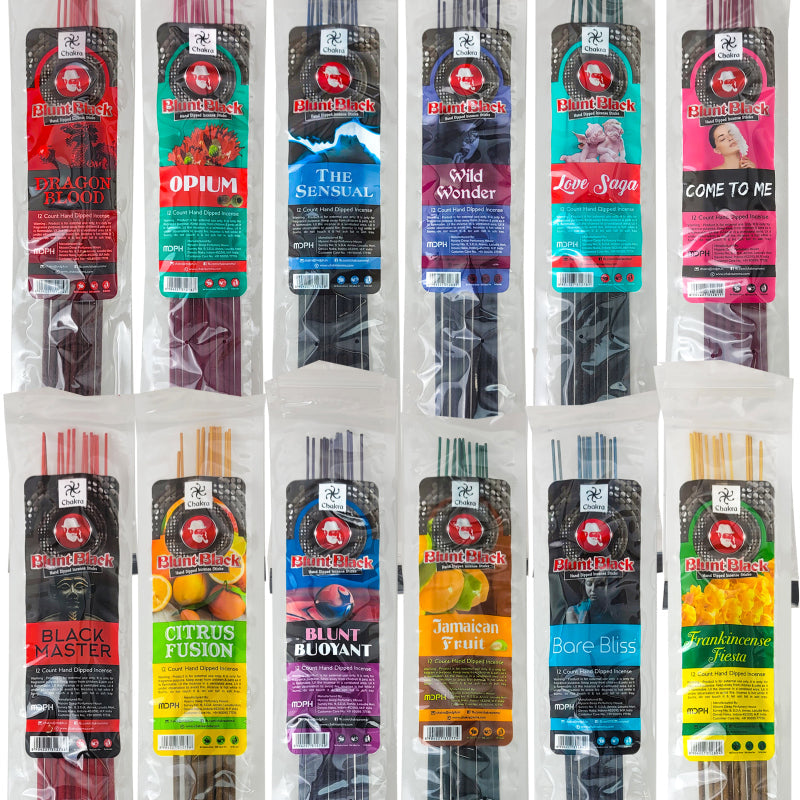 Blunt Black incense is made by MDPH, a leading maker of incense and incense-related products in India. Blunt Black incense is hand-dipped and formulated to cover up odors and to fill your favorite space with beautiful, expertly-crafted aromas. MDPH products are animal cruelty-free and child labor-free.