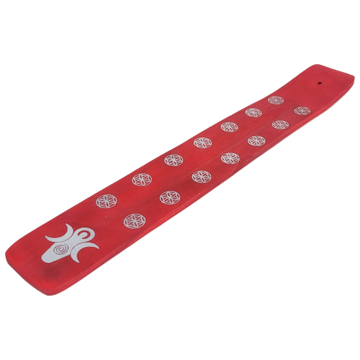 10" Wood Incense Burner & Ash Catcher, Triple Moon Goddess (Red) Design