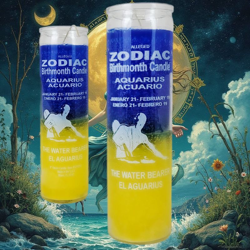 7 Day Candle, Zodiac Aquarius (Blue/Yellow)