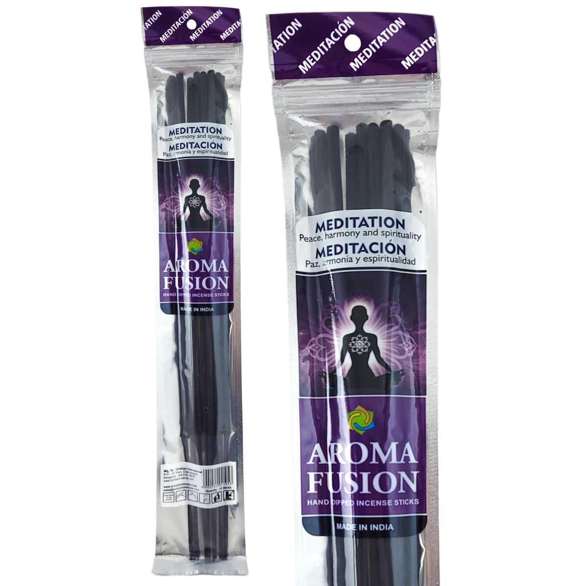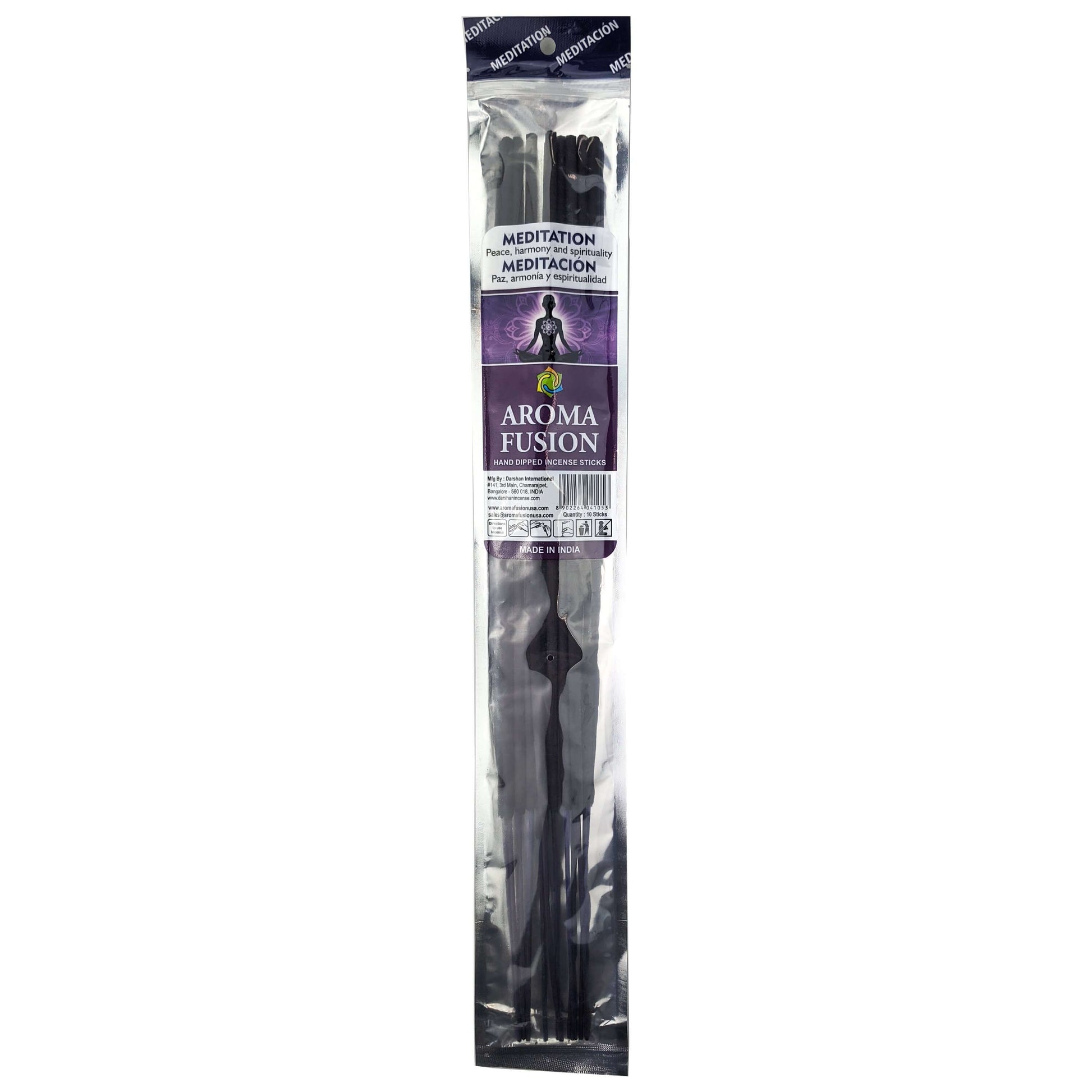 Aroma Fusion 19" Incense packs come with ~10 sticks each, hand-dipped in India. Made by Darshan International, these hand-dipped incense sticks burn for around 2+ hours to fill any space with your favorite scent.