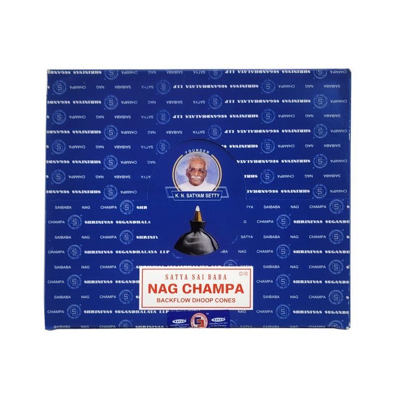 Nag Champa Backflow Dhoop Incense Cones, Box of 10 Cones, by Satya