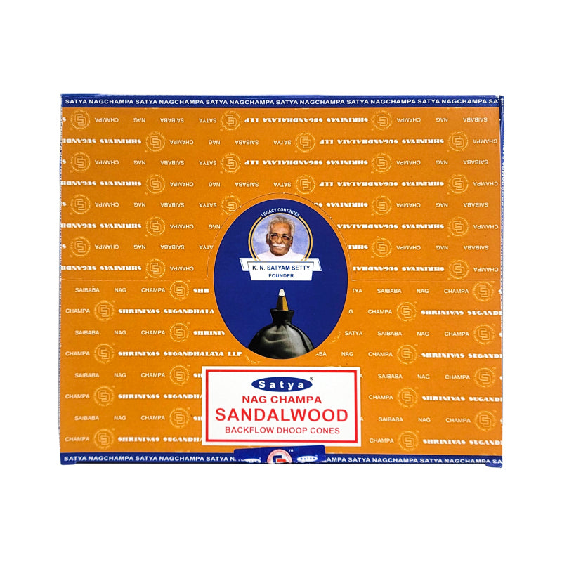 Sandalwood Backflow Dhoop Incense Cones, Box of 10 Cones, by Satya